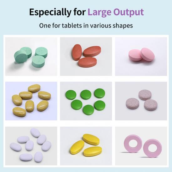 Il sistema integrato di regolazione automatica del peso delle compresse non richiede la regolazione del volantino. Il servomotore Siemens controlla la pista di riempimento e il sistema aumenta e diminuisce automaticamente la compensazione. La precisione media del peso delle compresse della comprimitrice è ≤±2%.