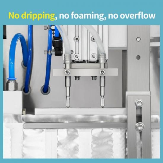 Inserire la testa di riempimento nella bocca della bottiglia (o utilizzare il riempimento senza contatto per evitare contaminazioni) e iniettare il materiale secondo il dosaggio preimpostato. Un sensore di livello del liquido monitora il volume di riempimento in tempo reale e il sistema verrà arrestato e regolato immediatamente in caso di anomalie. Sigillatura e polimerizzazione: